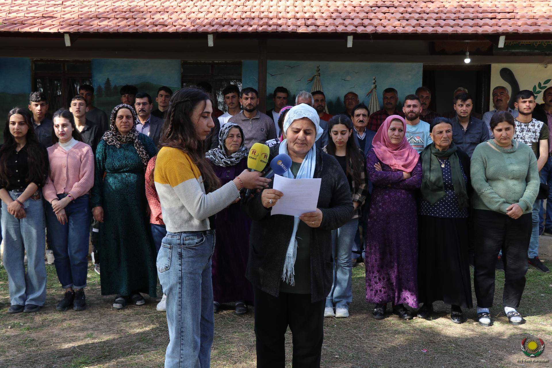 Dozens of the Yazidi component and members of the Yazidi House participated in the gathering, which was organized in front of the Yazidi House of the Jazira region in Amuda district. The co-chair of the Yazidi House of the Jazira region, Laila Mahmo, read a statement in this regard, which stated: